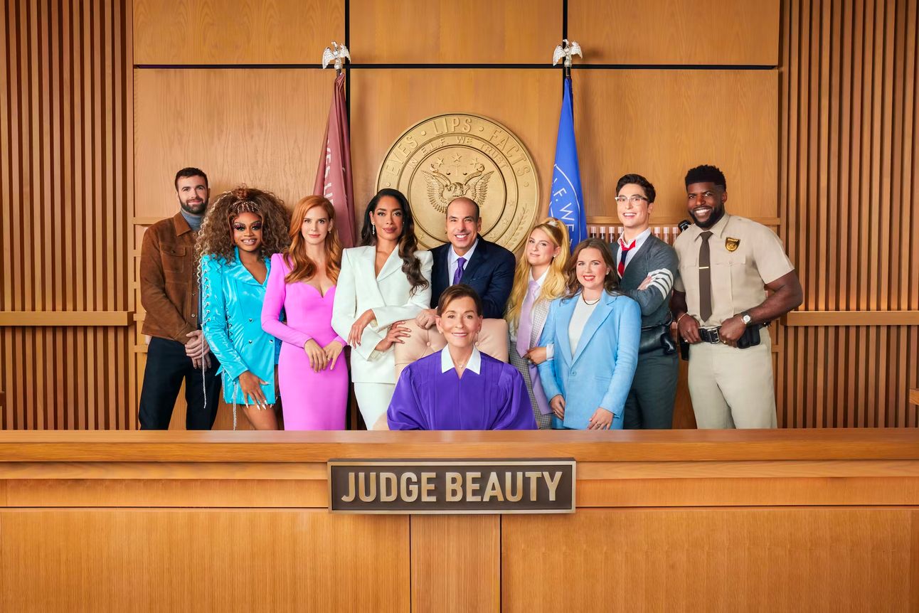 e.l.f. cosmetics retires Jennifer Coolidge and enlists Benny Drama’s character, Kooper the Intern, Ronald Gladden from Jury Duty, Meghan Trainor, Judge Judy, and the cast of Suits for a legal drama themed Superbowl spot