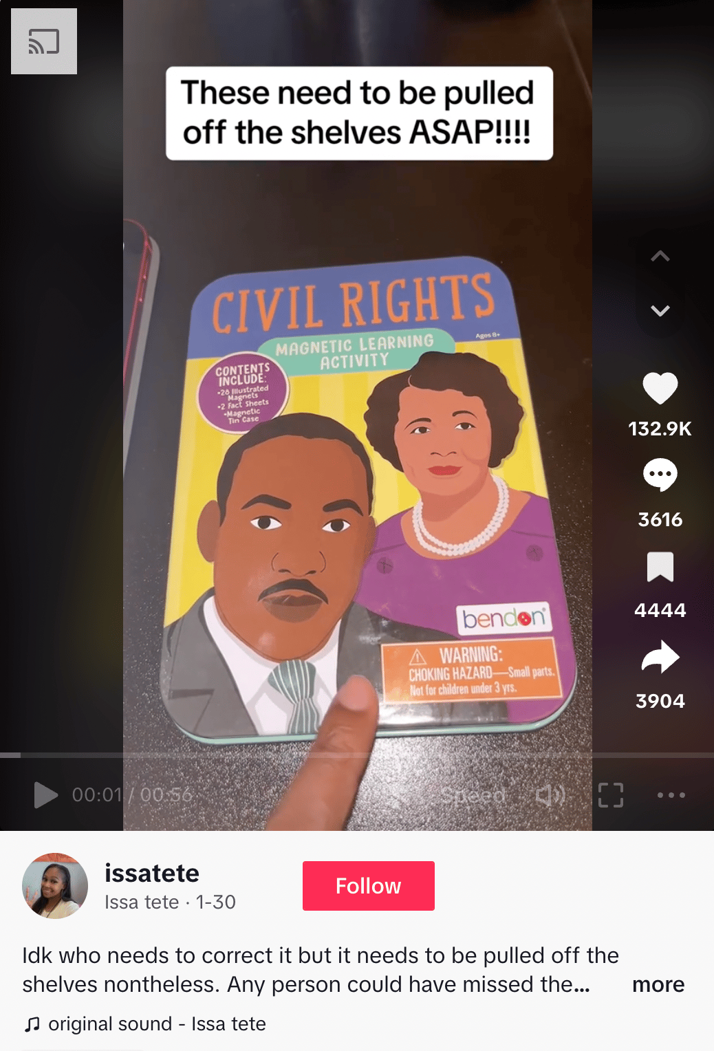 Teacher and TikTok User @issatete’s original TikTok post sharing the errors in the activity book sold by Target for its Black History Month Selection.